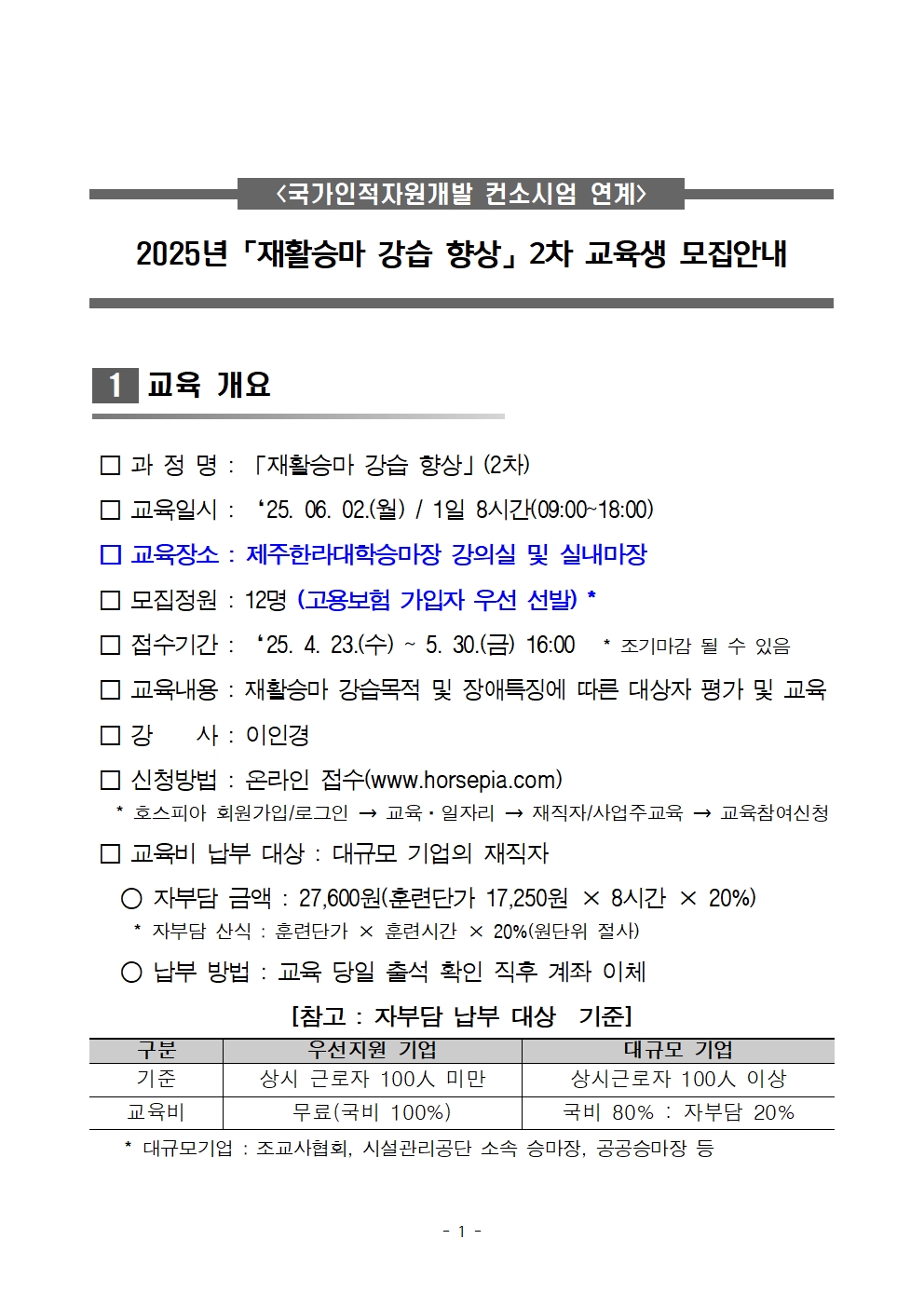 제목 모집안내_25년_재활승마 강습 향상(2차) / 제주한라대승마장
