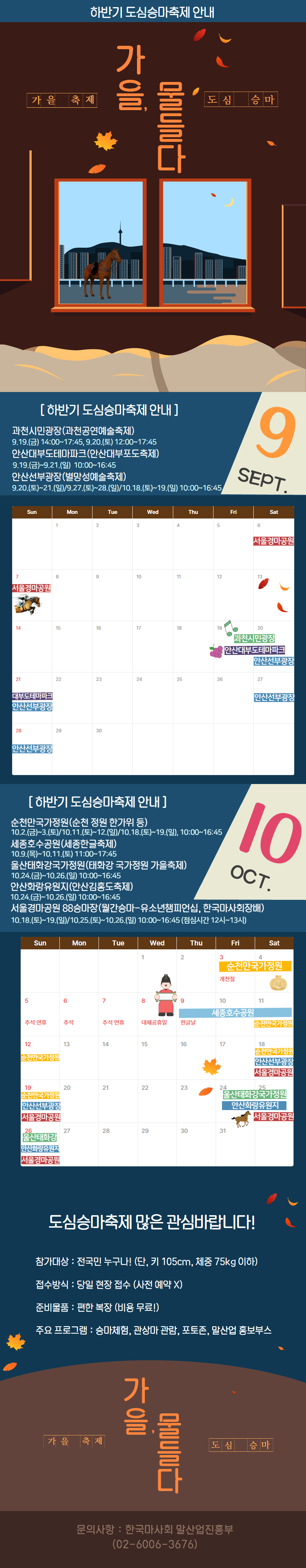 순천만국가정원에서 시행되는 도심승마는 국가자원관리원 화재로 인하여, 11.1.(토)~11.16.(일) 주말간 시행으로 변경되었으니 참고부탁드립니다.