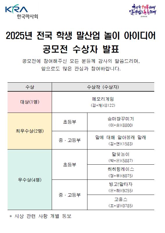 제목 [공모전] 전국 학생 말산업 놀이 아이디어 공모전 선정결과