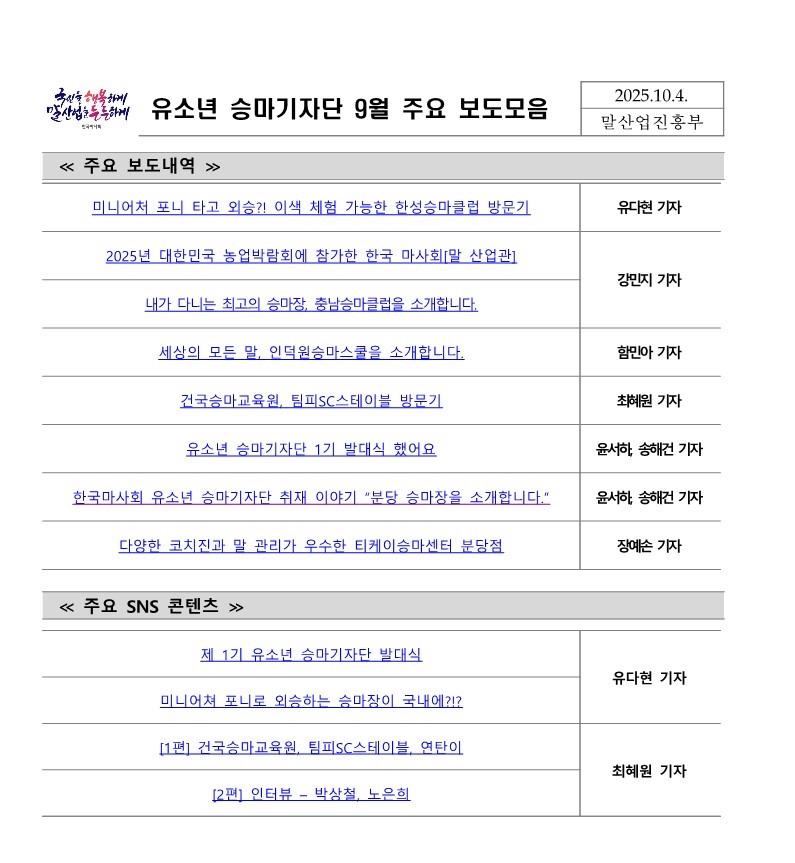 문의 : 한국마사회 말산업진흥부(02-6006-3677) ※월, 화요일 휴무