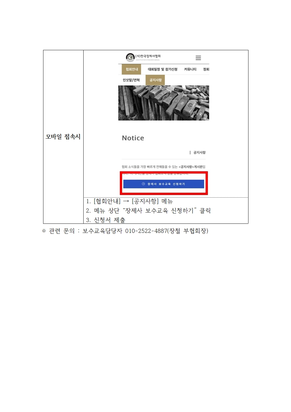 제목,등록자,등록일,첨부파일,내용으로 구성된 2023년 말산업 국가자격 장제사 보수교육 안내 게시글의 내용 보기