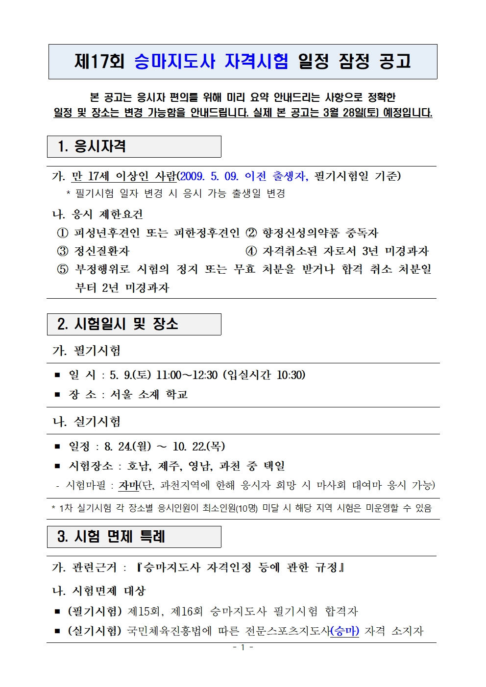 제목 (잠정 공고) 제17회 승마지도사 일정