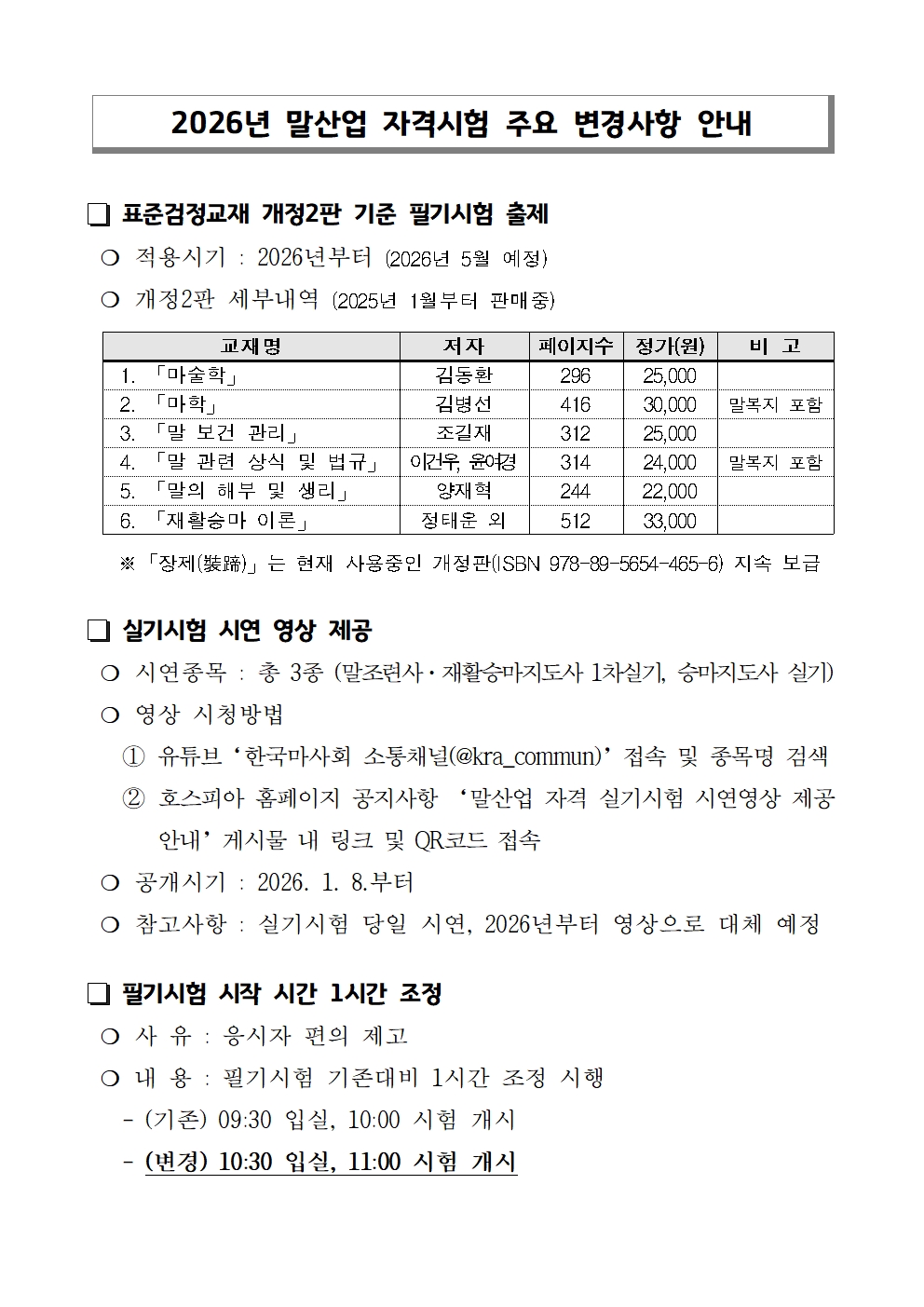 제목 2026년 말산업 자격시험 주요 변경사항 안내