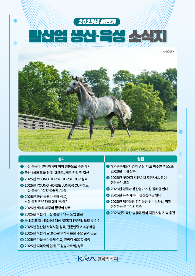 ★ '25년 하반기 주요성과 : 국산 승용마 해외 수출, 말복지 인증제 도입 및 선정 등