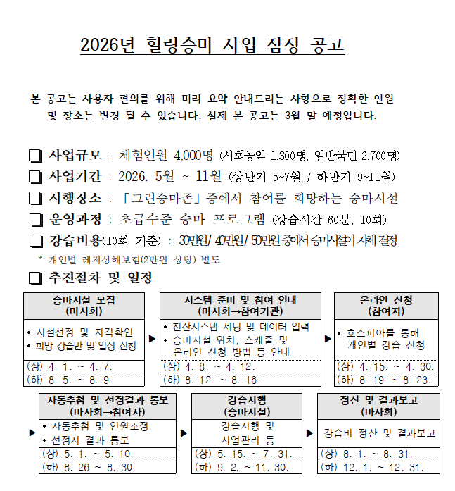 제목 2026년 힐링승마 사업 잠정 공고 수정