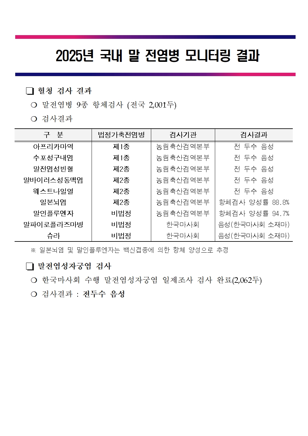 제목 2025년 전국 말 전염병 모니터링 결과