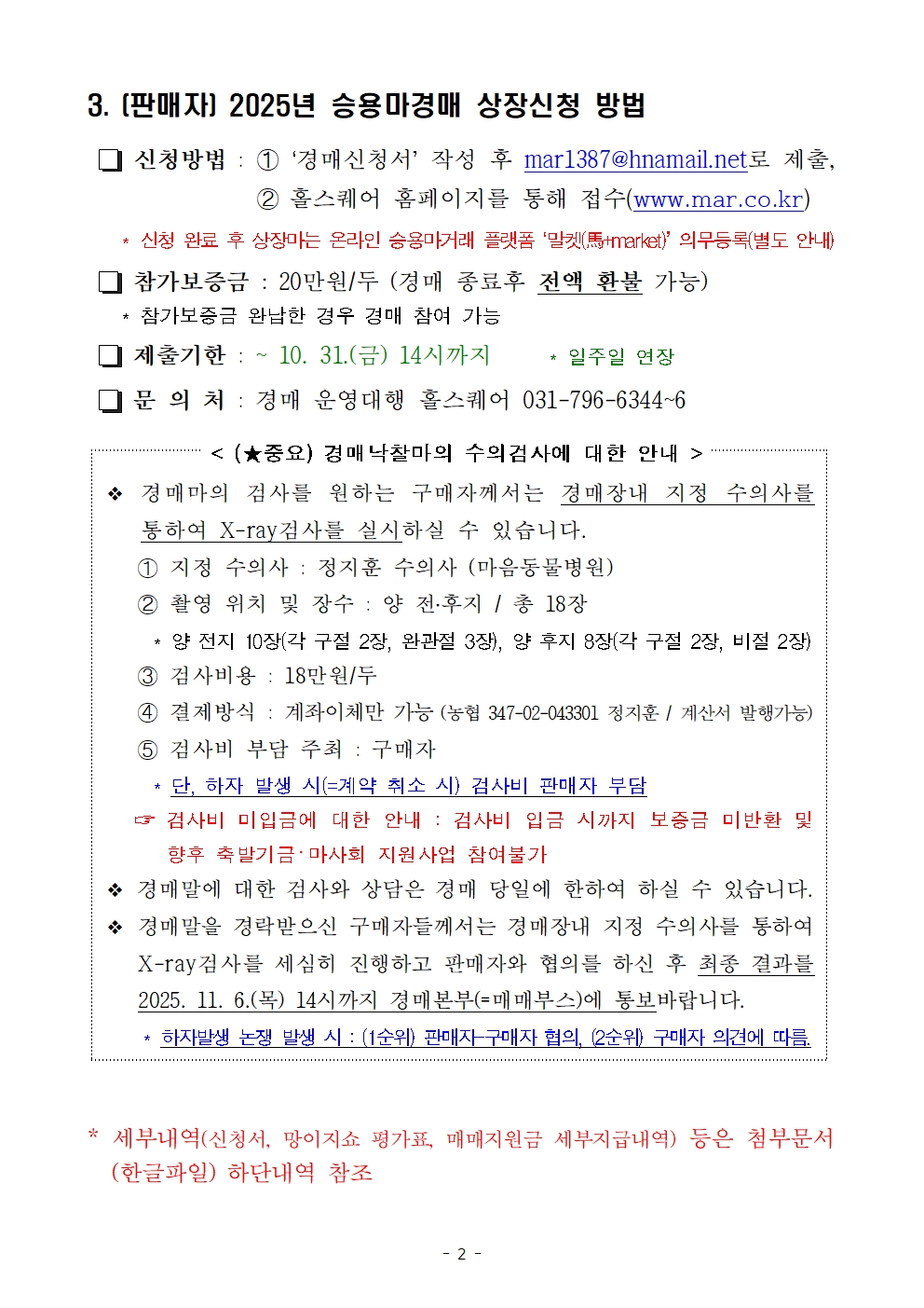 첨부파일 [최종] 2025년 승용마 경매 상장신청 연장접수 안내(말 소유자용).hwp