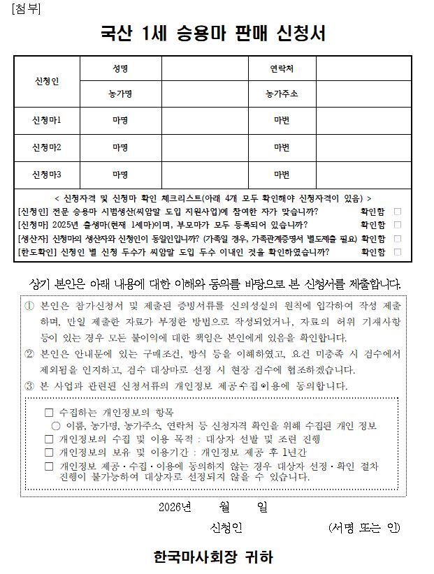 (첨부) 국산 1세 승용마 판매 신청서.hwp (참고) 말켓 말등록 방법.pptx
