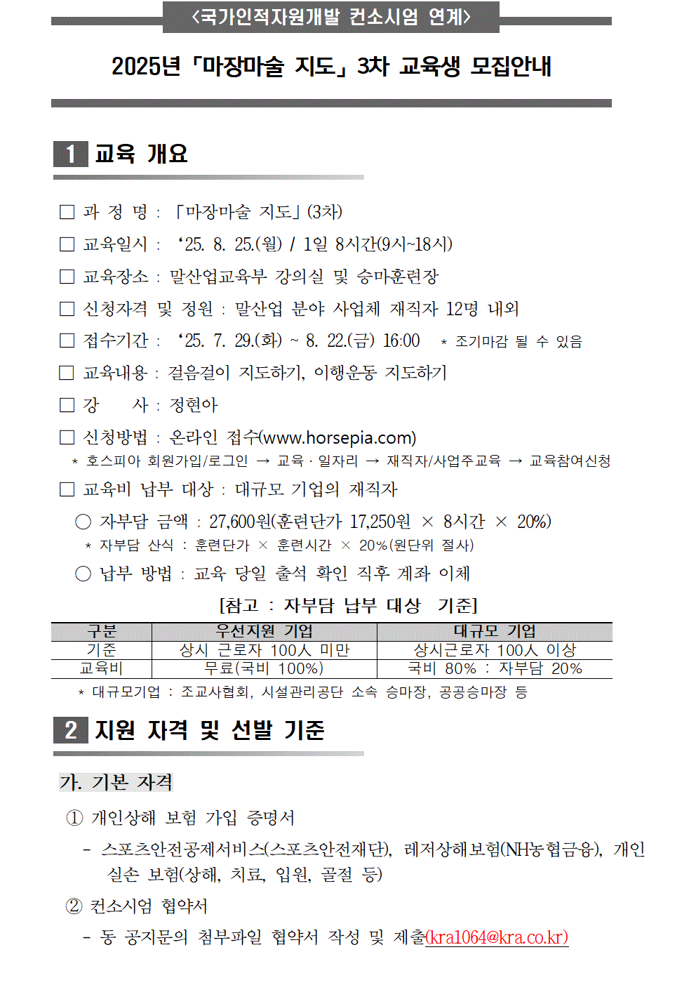 제목 모집안내_25년_마장마술 지도 과정(3차)